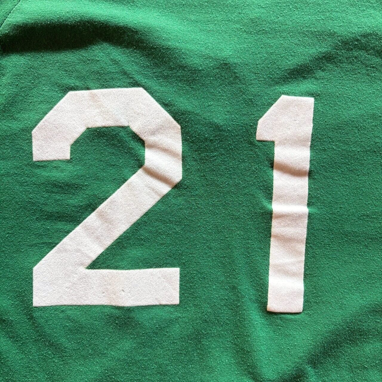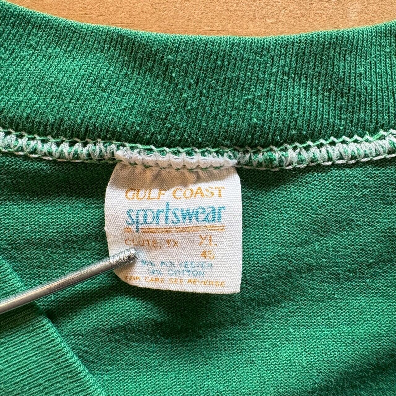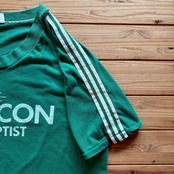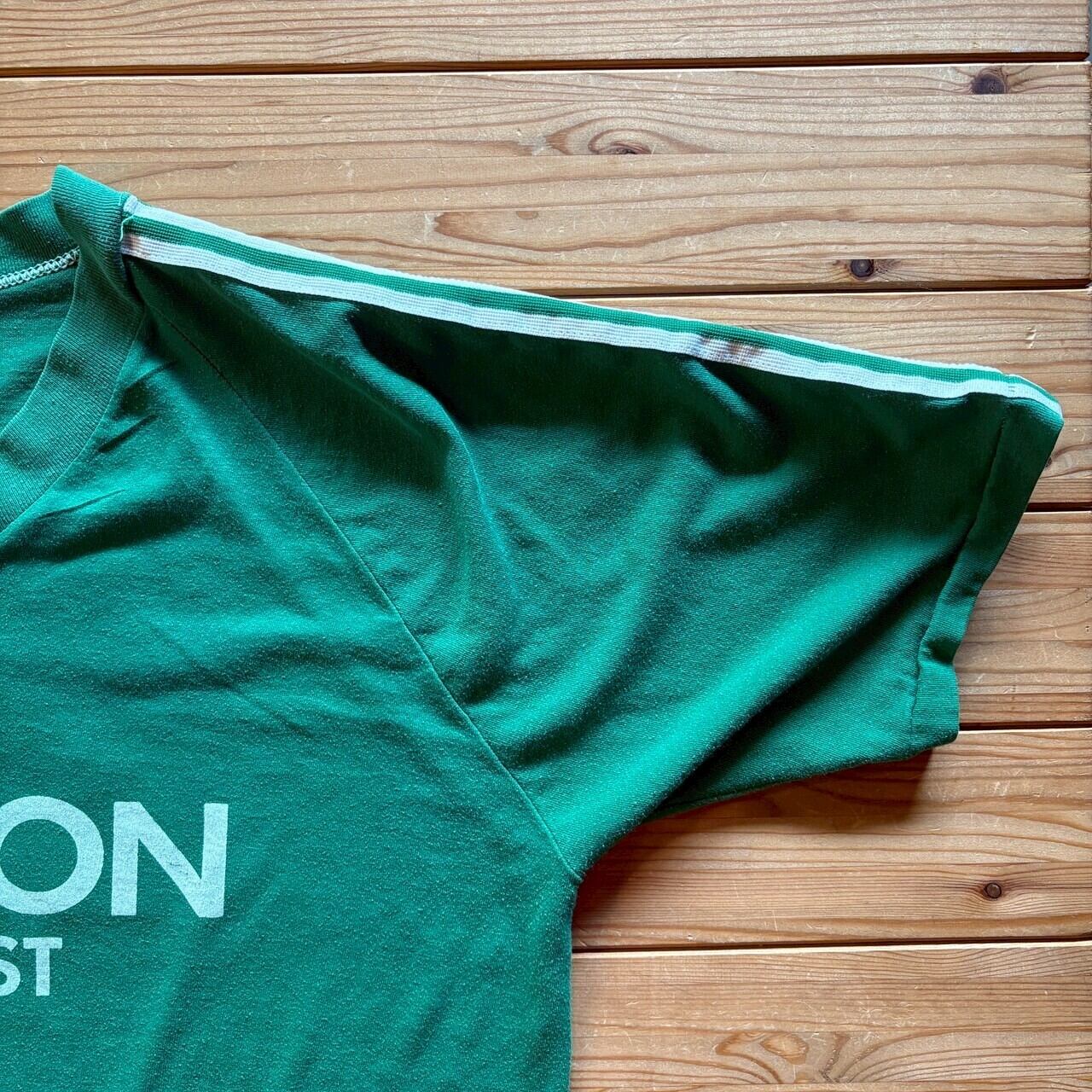 70's-80's USA製 Sports Wear ビーコン・バプティスト協会 Tシャツ バックプリント フロッキープリント 袖ライン グリーン 緑 シングルステッチ 70年代 80年代 スポーツウェア 古着 XLサイズ | 古着屋カネット