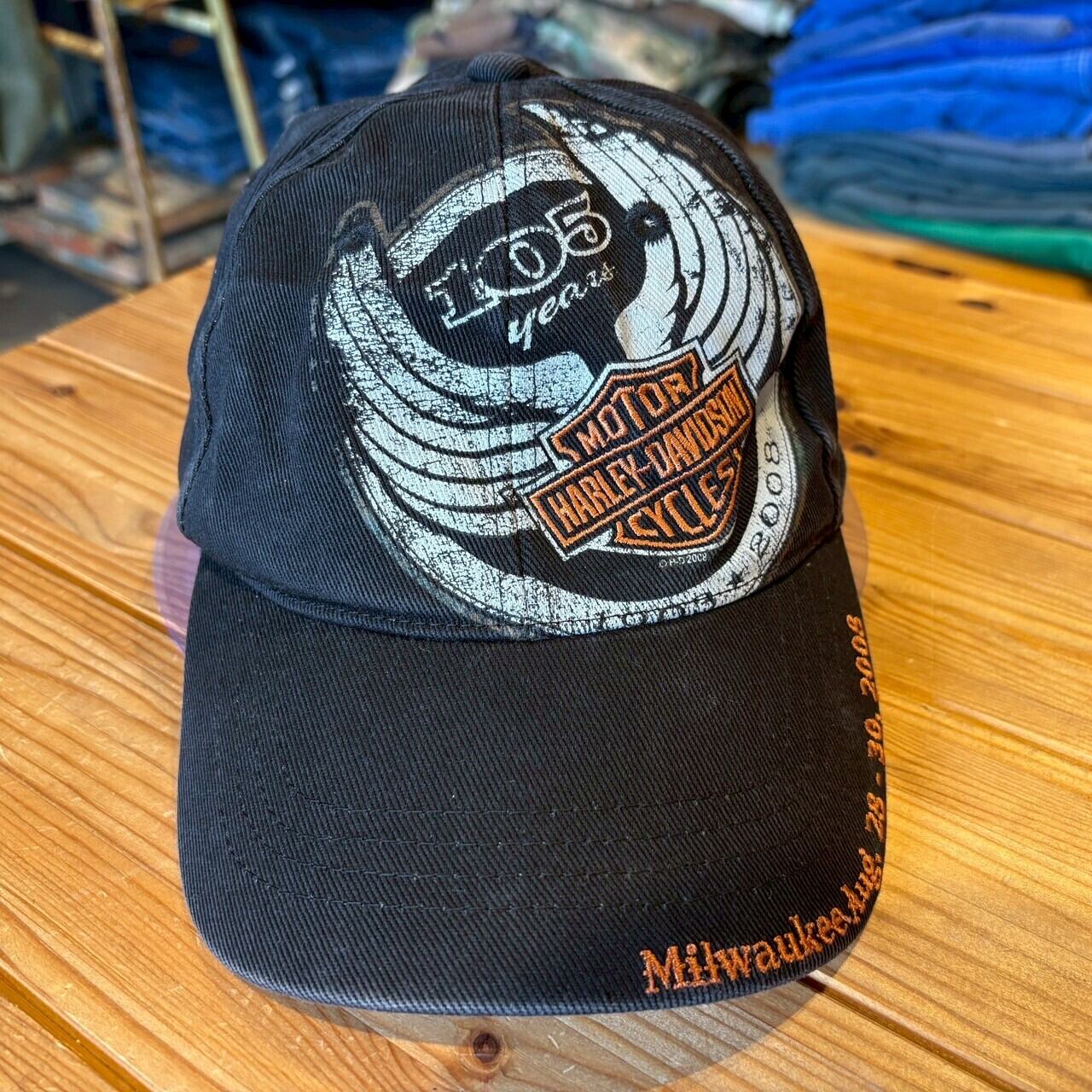 HARLEY-DAVIDSON 105周年記念 キャップ ハーレー 帽子 刺繍 ブラック バイク ハーレーダビッドソン 古着