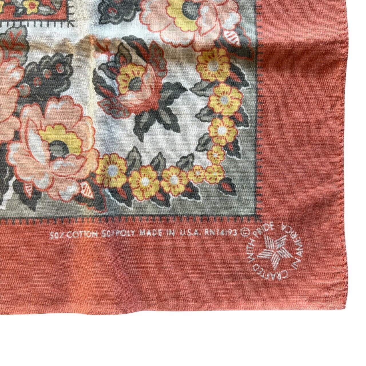 80's USA製 バンダナ 片耳 コの字 花柄 コーラル 80年代 RN14193