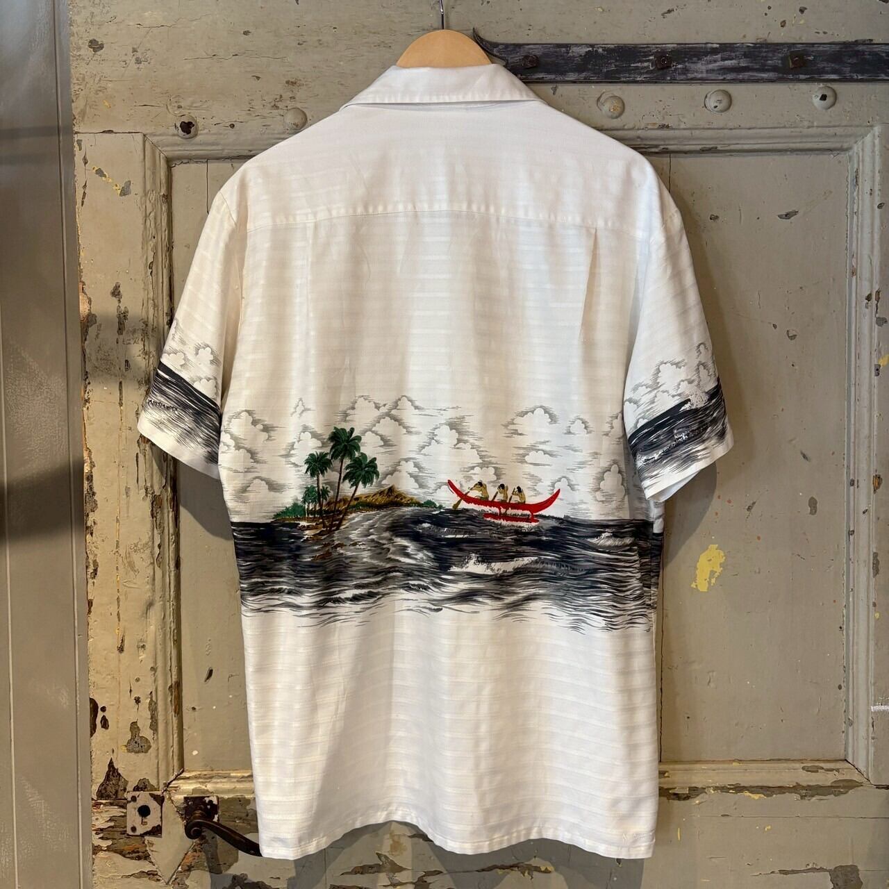 90's アロハシャツ レーヨン 白 開襟 半袖シャツ 90年代 古着 Lサイズ