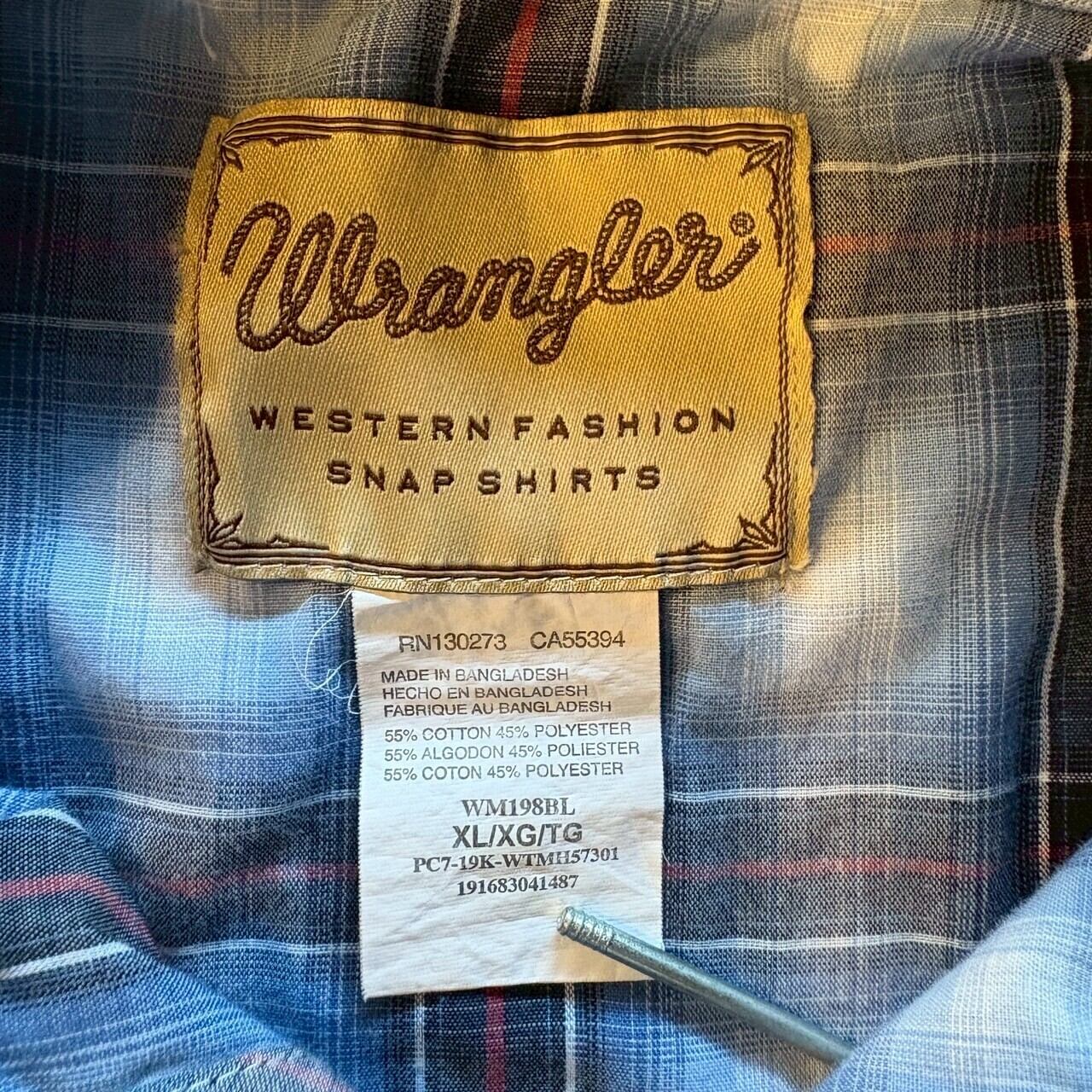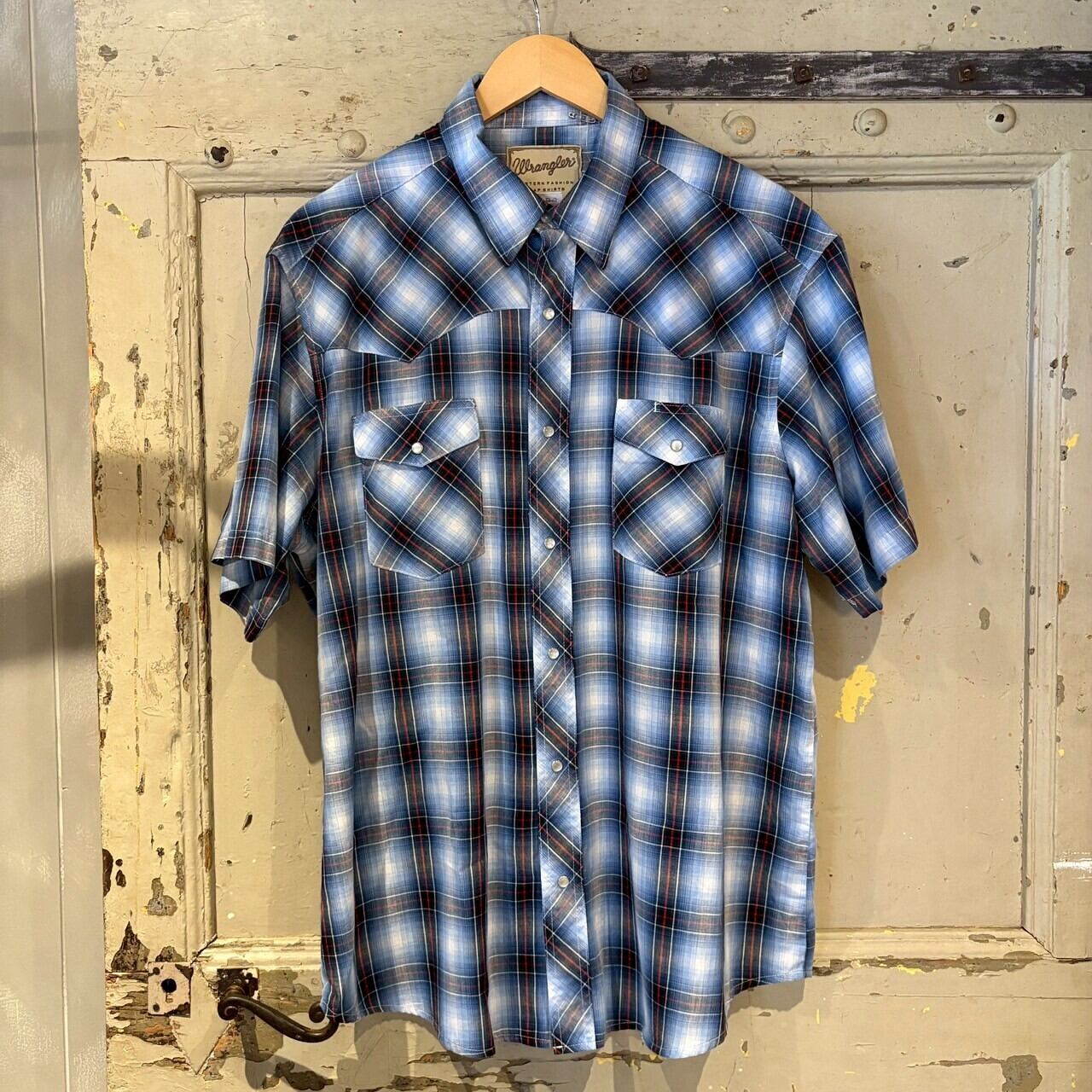Wrangler ウエスタンシャツ シャドーチェック オンブレ ブルー チェック柄 半袖シャツ ラングラー 古着 XLサイズ