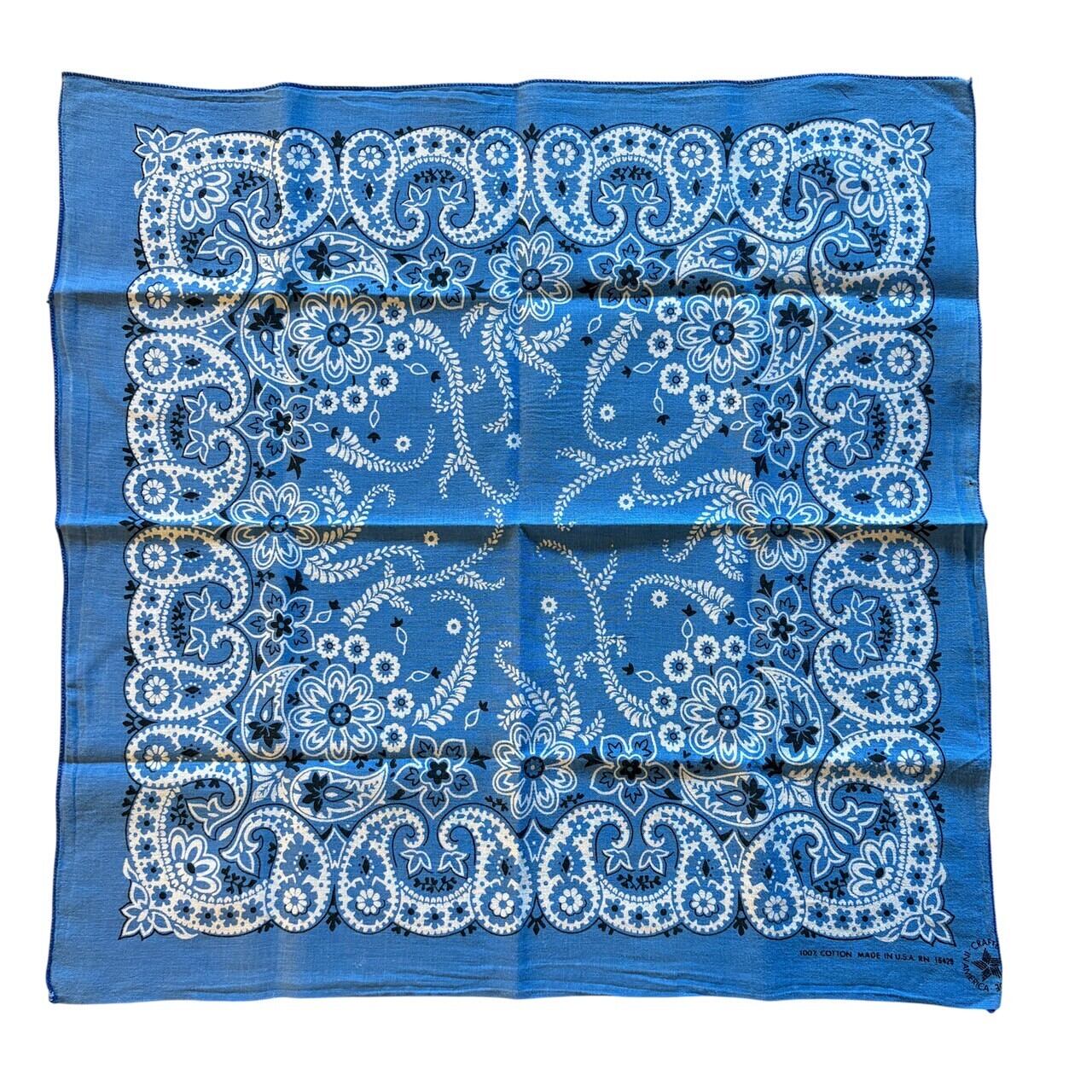 80's USA製 バンダナ ブルー 青 片耳 コの字 80年代 RN16429