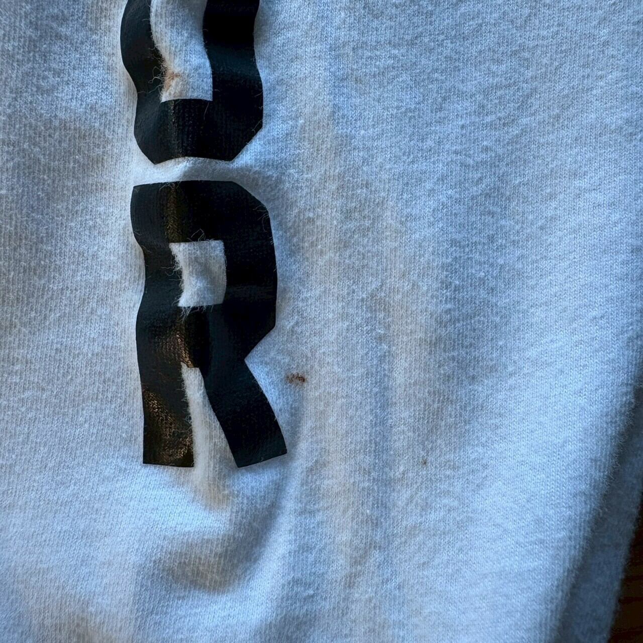 シミ汚れ、袖プリントに欠陥があります。