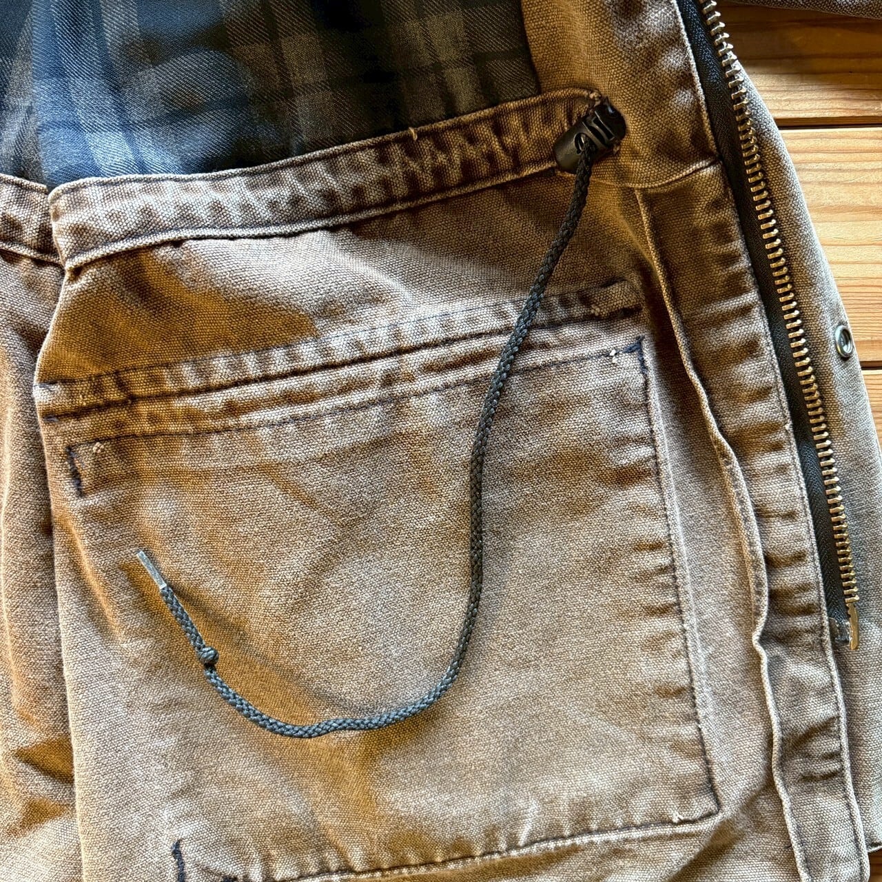また、フェードしたブラウンにかなり丈夫なダック生地が無骨な印象でかなりかっこいい一着です。